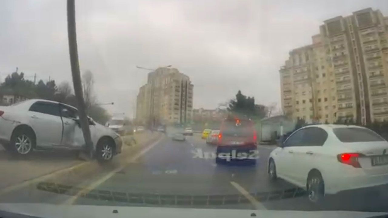 Savrulan araç yol ortasındaki refüje çıkarak çarptığı elektrik direğini devirdi. Yerinden sökülen direk yola devrildi. O sırada ters yönde ilerleyen bir başka sürücü, devrilen direği son anda fark ederek manevra yaptı ve facianın eşiğinden dönüldü. Korku dolu o anlar, direğin altında kalmaktan son anda kurtulan aracın kamerası tarafından saniye saniye kaydedildi.